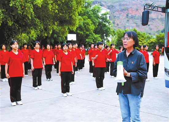 6月7日,丽江华坪女子高级中学的150名考生在该校党支部书记、校长张桂梅的护送下,走进高考考场。 当天一大早,张桂梅组织高一、高二的学生为即将参加高考的学生加油鼓劲,随后又在去考点的路上组织考生唱红歌缓解考前紧张情绪。 “有张老师陪我们参加高考,为我们加油鼓劲,我很安心,也更有信心了。”高33班学生代永滢说。 今年是张桂梅坚持陪考的第11个年头。每年高考临考前,张桂梅都会组织低年级学生为高三学生唱红歌或跳舞加油鼓劲。她护送考生到达考点,叮嘱检查考试用具,帮助考生缓解压力。 今年64岁的张桂梅身患肺气肿、肺纤维化等10多种疾病,考点处长长的阶梯要靠学生的搀扶才能走完。但她觉得陪考是她作为老师的责任,就算再苦再累,只要陪在学生身边给她们信心,让她们发挥得最好,一切就都值得。本报记者 和茜 通讯员 赵瑞 陈莹 王钢 钱辉 胡才星