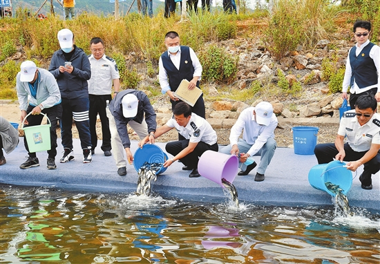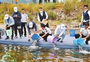 本报讯(记者 龙舟) 6月4日,在昆明阳宗海风景名胜区举办的“六·五”世界环境日暨全国“放鱼日”系列活动中,100万尾优质青鱼、鲢鳙鱼苗放流阳宗海。 当天的增殖放流活动以“人与自然和谐共生”为主题,来自昆明市生态环境局、市农业农村局、阳宗海区级各部门干部职工、辖区群众、环保志愿者、学生及企业代表150余人参加了放流活动。 近年来,阳宗海湖体水质持续改善,从2008年的劣Ⅴ类水恢复到Ⅲ类水,部分月份达到Ⅱ类水标准,2016年被纳入国家良好湖泊治理支持范围。自2012年以来,阳宗海风景名胜区已连续多年组织实施了渔业增殖放流活动,目前已累计增殖放流优质鱼苗900余万尾。