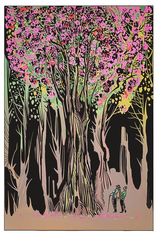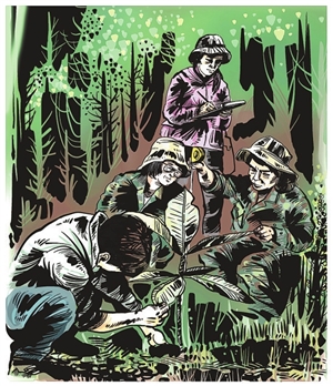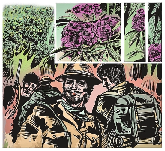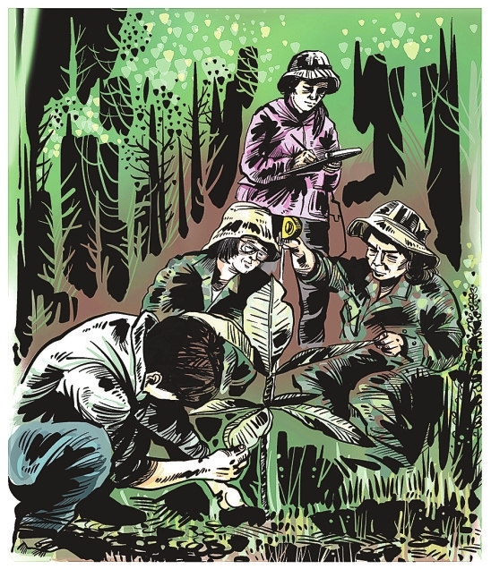 高黎贡山是世界生物多样性最丰富的地区之一。在这片物种密集、竞争激烈的丛林里,只有不断在生长中超越自身的极限,才能占有一席之地。其中,杜鹃花属中全球现存最高大的乔木树种——大树杜鹃,在芝麻大的种子破土而出后,要挺过狂风暴雨的洗礼、飞禽走兽的摧残,与周围植物争抢阳光……上百年的坚持才能跻身于森林的顶层,以高达20多米的身躯傲视天地。 1919年,英国人乔治·福瑞斯特在高黎贡山发现了一株高达20多米的杜鹃,因其高大的身躯,他将其命名为大树杜鹃。后来,他雇来工人将其砍倒并将树干锯成圆盘运回英国。时至今日,这枚标本仍陈列在大英博物馆中。 然而自此之后,大树杜鹃仿佛一个惧怕受到伤害的精灵从人们的视野中消失了。为了找寻大树杜鹃,20世纪80年代初,中国科学院昆明植物研究所研究员冯国楣历尽艰辛3进高黎贡山,终于寻觅到了两株大树杜鹃。此后,当地林业局的工作人员又找到了一株树高28米、胸径106厘米,树龄在630年以上的大树杜鹃。 经过测算,大树杜鹃含幼苗在内现仅存1771株,仅分布于高黎贡山腾冲片区两个极小的区域内,被列为我国一级珍稀植物。目前,高黎贡山国家级自然保护区的护林员们正通过就地保护、物候监测、育苗等各种行动,对大树杜鹃开展保护。 懂得欣赏与珍视,为大地留下郁郁葱葱、万物生动,这是“一棵树”历经劫难,用生命年轮与人类达成的约定。 文字整理:李茜 普娅鑫 李楠 绘画设计:何沐 云南网供图 1.1919年,一支考察队伍在云南高黎贡山的原始森林搜集珍贵植物。其中,最让他们着迷的是杜鹃花。 2.为了编写出版《中国杜鹃花图谱》,冯国楣攀危崖、穿密林、过深涧,拍摄了数以万计千姿百态的杜鹃花照片,唯独少了大树杜鹃的身姿。 3.冯国楣第三次奔往腾冲,终于见到了梦中之花。两棵生长了数百年的古树挺拔粗壮,占地100多平方米的树冠开着千百朵水红色的花朵,鲜嫩妩媚。 4.高黎贡山国家级自然保护区的护林员们对大树杜鹃开展保护,现在,每一株大树杜鹃都有了属于自己的编号。