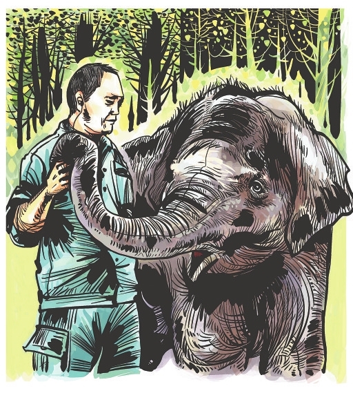 2015年8月17日,在普洱市思茅区橄榄坝村,一位老婆婆在柴房里发现一头奄奄一息的小野象。经检查发现,这头小象出生仅两周,脐带严重感染,心律不齐……随后,它被紧急送往位于西双版纳野象谷的中国云南亚洲象种源繁育及救助中心进行救治。 经过救助中心的科学救治和精心护理,小象被从“死亡线”上拉了回来,在“象爸爸”陈继铭的悉心照料下,小象长成了一个胖乎乎的“小萌妞”,因为在羊年出生,又是喝羊奶长大的,这头雌性小象有了一个俏皮名字——“羊妞”。 救助中心里,平均两位“象爸爸”负责护理一头大象,不仅包括日常饮食起居,还要赶着它们进入原始森林进行康复训练和觅食。“羊妞”是目前世界上被母象遗弃后,存活时间最长的亚洲母象,成为我国在亚洲象保护研究领域的一个成功案例。 经过坚持不懈的拯救和保护,中国境内野生亚洲象的数量从上世纪80年代的150头增长到了300头左右,西双版纳、普洱、临沧都有多个象群在森林里长期活动。西双版纳自然保护区建立了全国首个亚洲象监测预警中心,实时跟踪象群最新动态;普洱建成了中国境内首个亚洲象监测塔,全面提升亚洲象安防预警……如今,云南正努力探索亚洲象保护与人象冲突防范工作,建设“人象和谐”的绿色家园。 文字整理:徐琲童 张音笛 绘画、设计:何沐 云南网供图 1.亚洲象是亚洲现存最大和最具代表性的陆生脊椎动物,在中国被列为国家I级重点保护野生动物。 2.“象爸爸”陈继铭无微不至地照料着失去了家人的“羊妞”。 3.陈继铭带“羊妞”进入原始森林进行康复训练和觅食。
