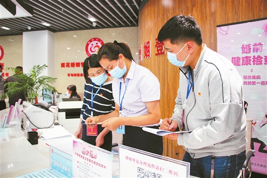寻甸回族彝族自治县纪委监委坚持强化监督职能,为构建“亲”“清”政商关系提供坚强纪律保障。图为该县纪检监察工作人员深入婚姻登记窗口检查为民服务事项办理落实情况。凡玉莹 摄